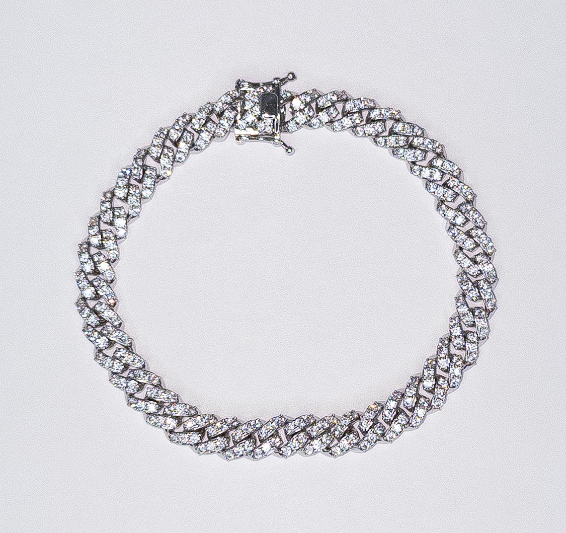レディース アイスシルバー アンクレット - 8インチ キューバンリンク アイスブリング ジュエリー